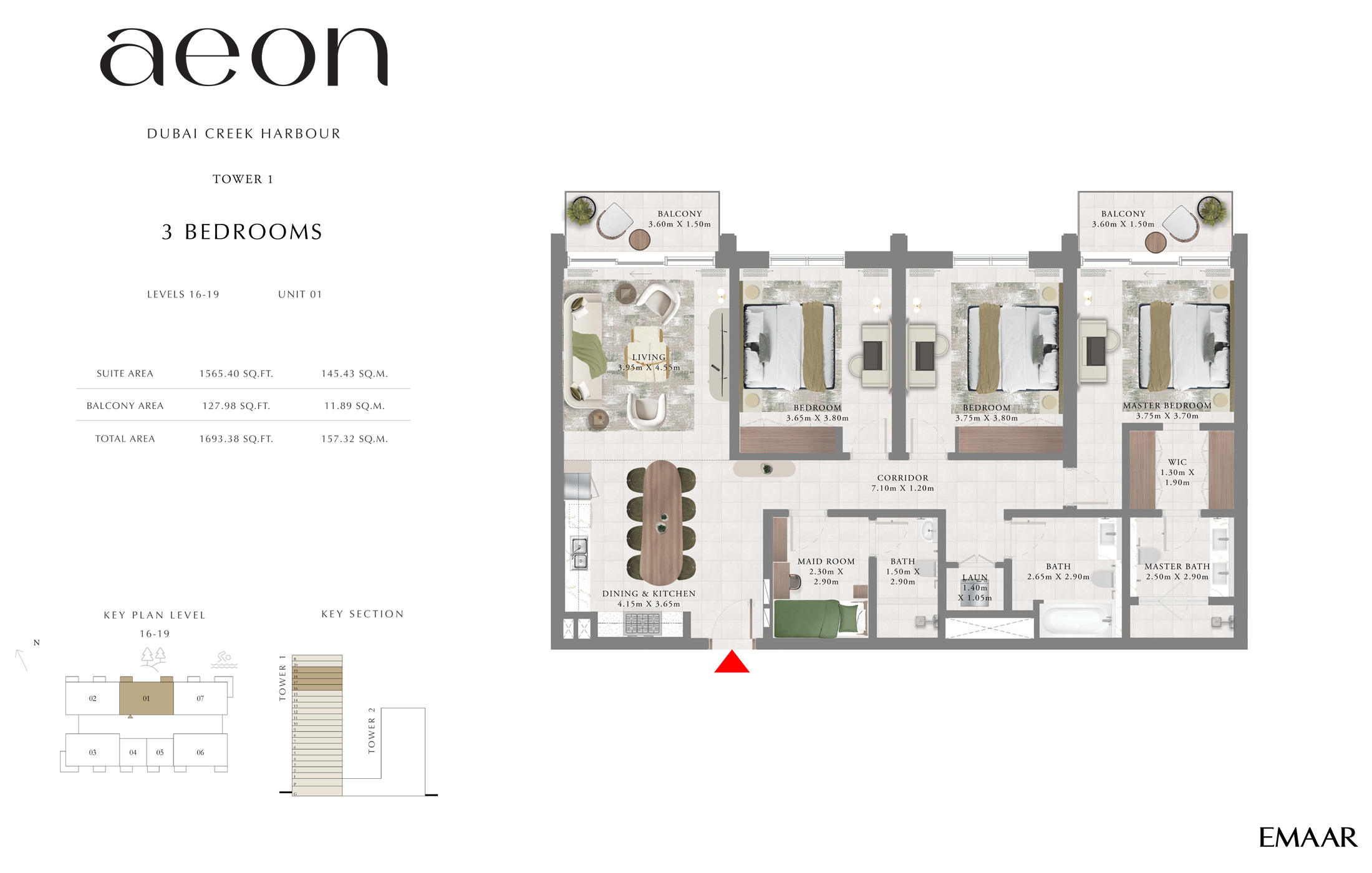 Discover the epitome of waterfront living with AEON at Dubai Creek Harbour, developed by the renowned Emaar Properties, lined with premium 1, 2 & 3-bedroom beachfront apartments. This new development seamlessly integrates ultra-modern urbanism with the historic charm of Dubai Creek. Wake up to awe-inspiring open skies and picturesque water scenes, as Dubai Creek Harbour emerges as a thriving community for living, working, playing, and capturing cherished moments.