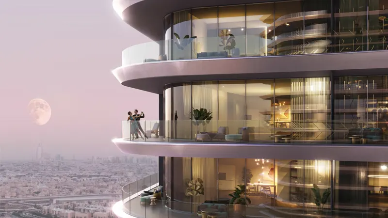 Discover the new residential epitome Binghatti Hills at Dubai Science Park, a luxurious residential development by Binghatti Developers with studios, 1 & 2-bedroom apartments. Inspired by the natural contours of rolling hillsides, the façade aims to capture a serene ambiance and translate it into a stunning architectural design. Boasting one of the largest buildings in the world, this development stands out with its unique blend of smart home features, state-of-the-art interiors, and a diverse view of Dubai's iconic skyline.