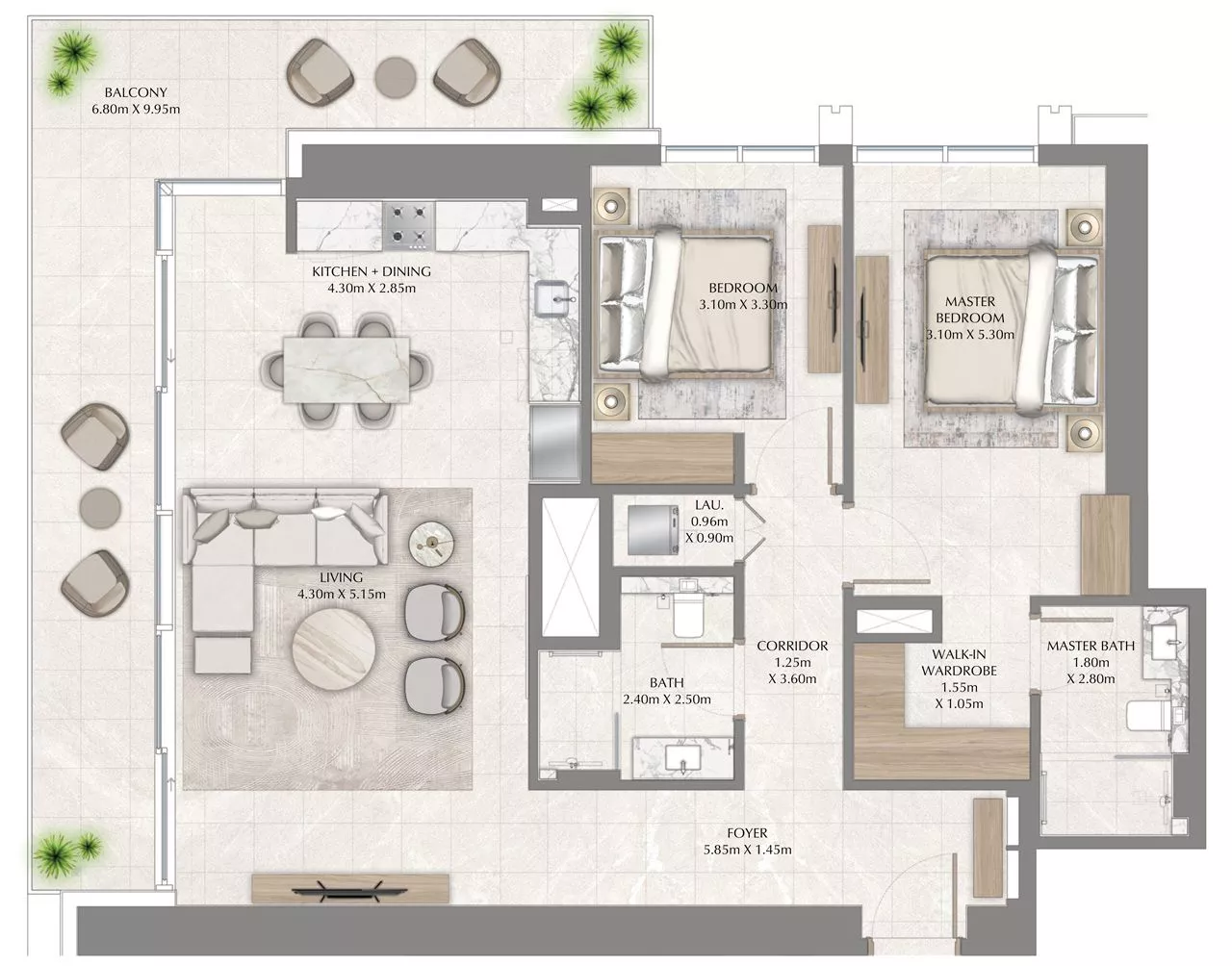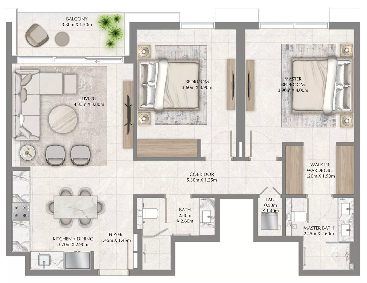 The distinctive features of the stunning penthouses on the upper floors are the private studies and panoramic views of the waterfront. Meanwhile, the townhouses will feature spacious rooftop terraces overlooking the Creek, the famous Dubai skyline and the Creek Island Promenade.
