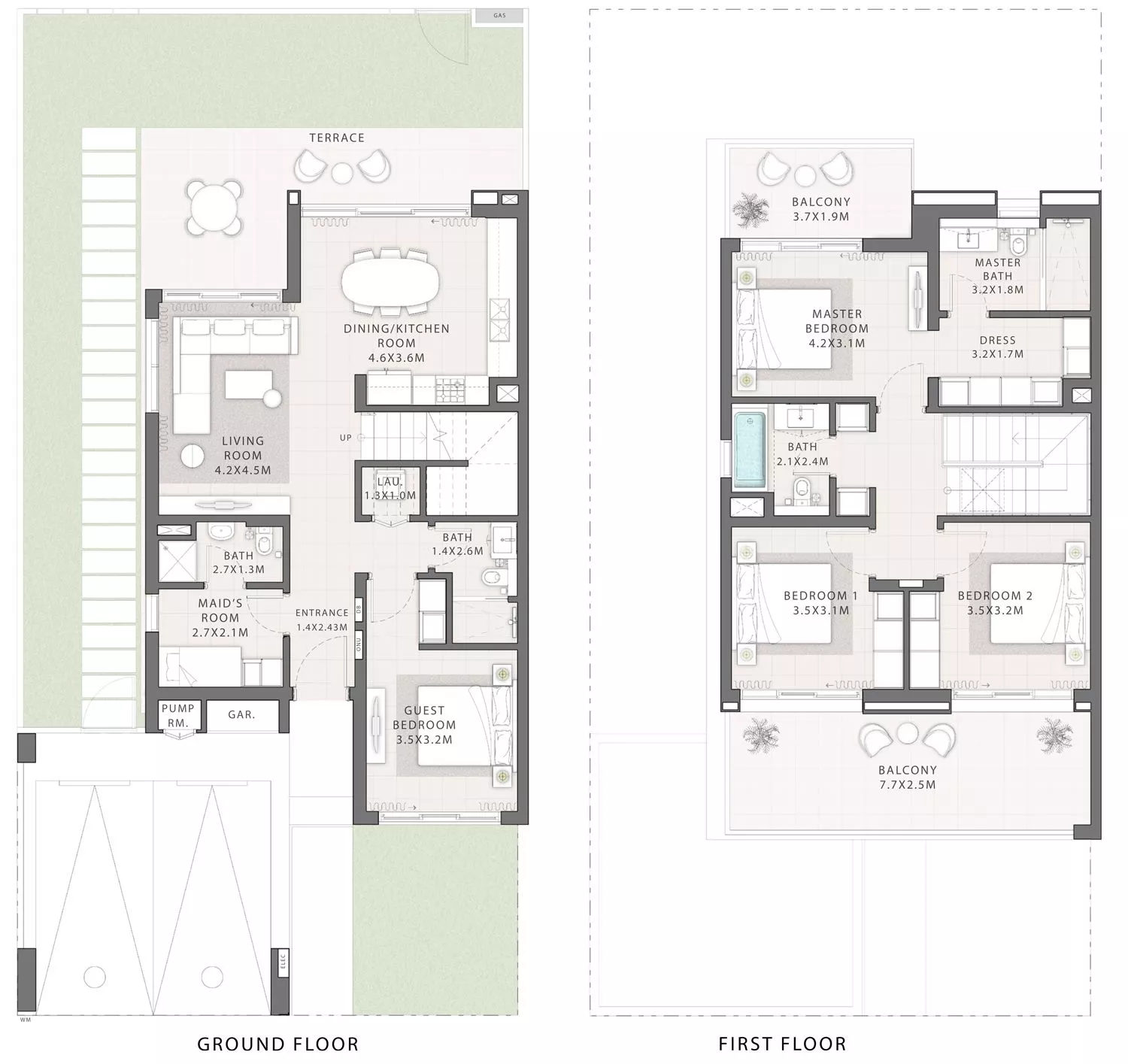 The floor plan size of the Elora townhouses ranges from 2,095 sq. ft to 2,608 sq. ft, whilst the average plot area varies between 1,485 sq. ft and 2,797 sq. ft. For the utmost comfort and convenience of occupants, the properties will come with a staff room, a store room, a terrace, a laundry room and a balcony. There are 2 architectural styles to choose from: Moon, which will have an alluring interplay of planes and masses, and Mysk with rich-tones and open corners.
