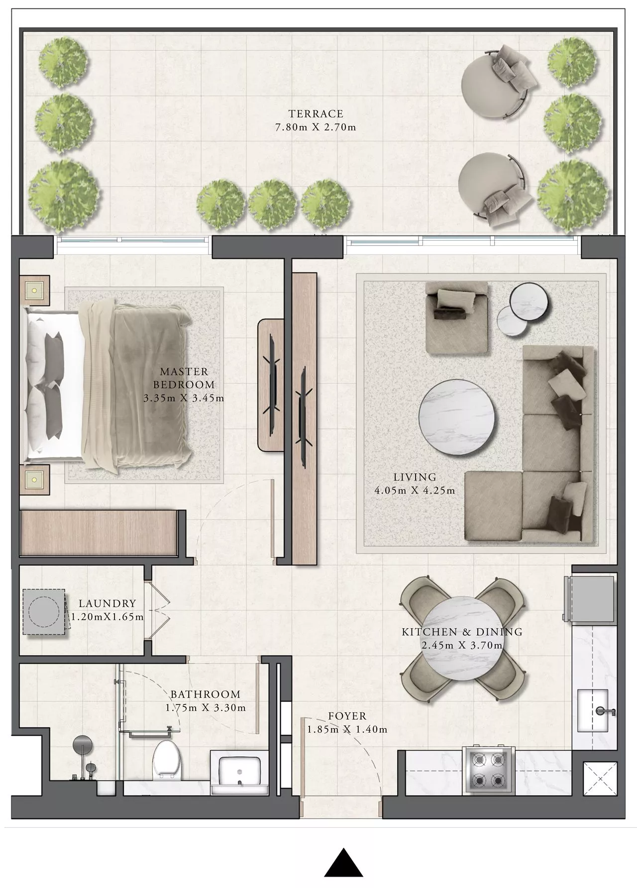 The living area of the properties ranges from 680 sq. ft to 2,011 sq. ft, and each residence will feature 1-2 balconies or a terrace, whilst 3-bedroom layouts will also come with a maid’s room. The design of the interiors will be executed in neutral tones, and complemented with porcelain tiles and laminate shutters with melamine carcasses.