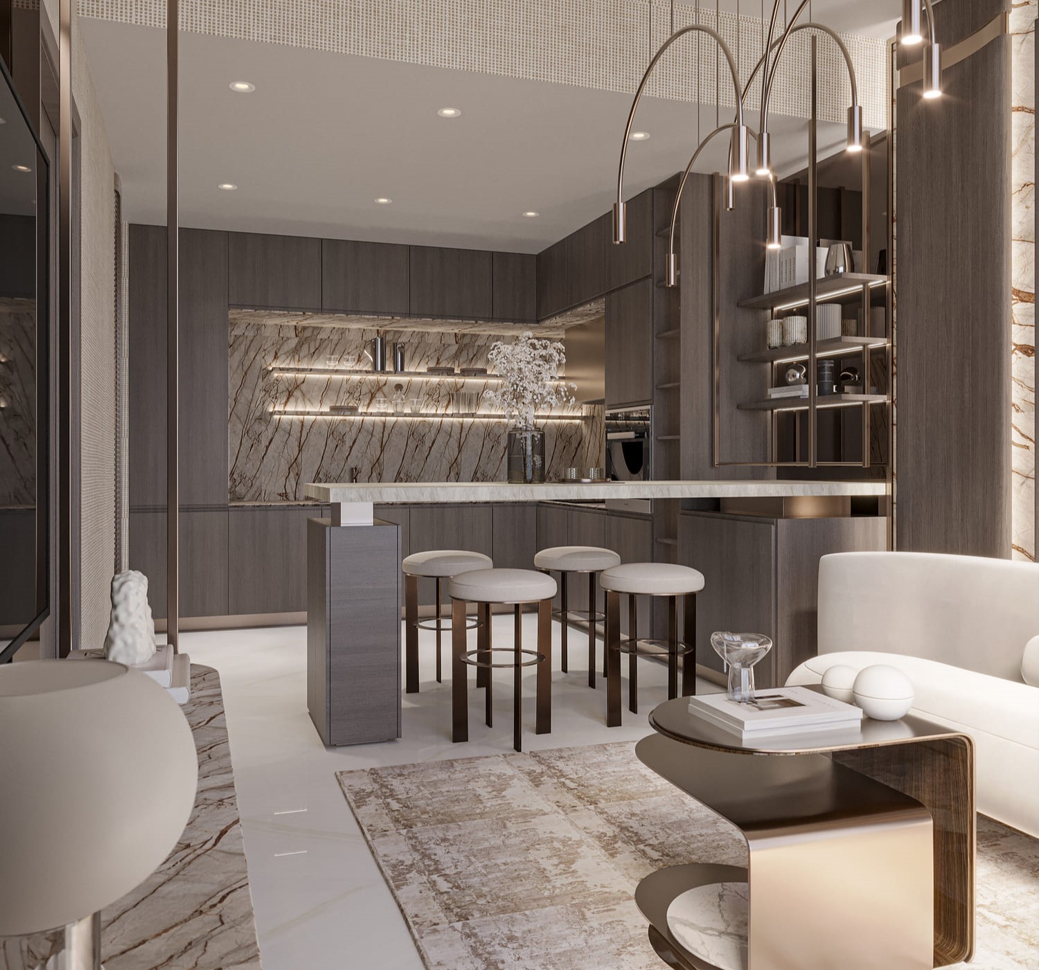 The facade showcases a premium collection of luxury residences that embody a vision of sophisticated urban living. From the moment you step into the development, you're welcomed by an atmosphere of contemporary elegance and relaxed leisure. The apartments are a design masterpiece, featuring large windows that flood the spacious bedrooms with natural light and fresh air. With top-quality finishes and sleek architectural lines, these residences provide a spacious, refined haven in the heart of the bustling city.