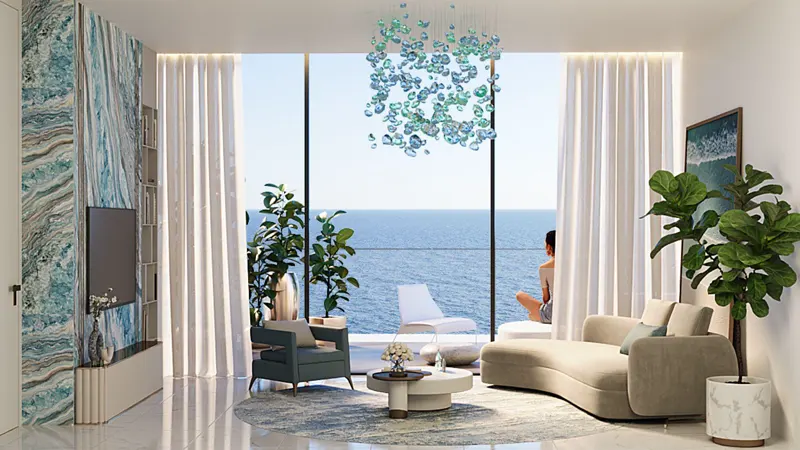 Inspired by the graceful movement of the majestic Stingray, the building’s profile embodies elegance and fluidity. Its distinctive shape harmonizes with the surrounding landscape, creating a seamless integration of modern comforts with natural elements. Each apartment boasts spacious interiors, open-floor plan design and large windows, inviting ample natural light and stunning views of the azure waters.