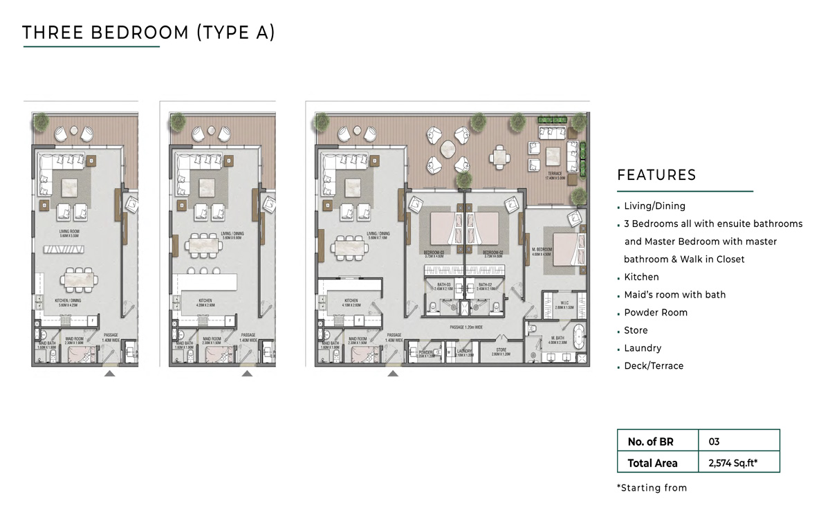 1. 3 Bedroom Apartment: 2171 to 2574 sqft