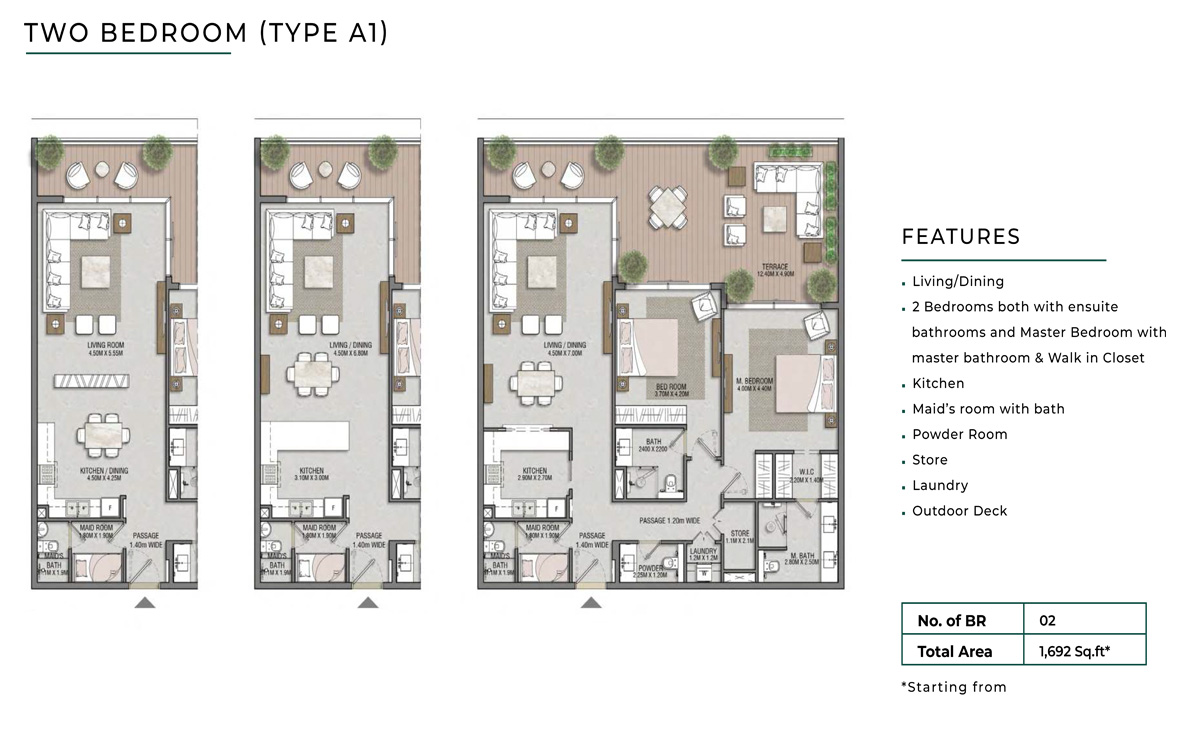 3. 2 Bedroom Apartment: 1692 sqft, 1825 sqft, 1612 sqft, 1457 sqft