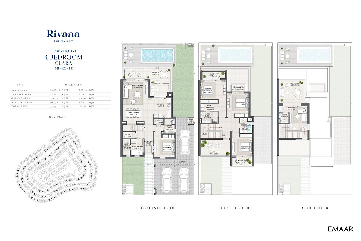 Rivana comes as the first twin villa development in the coveted The Valley by Emaar Properties. The premium project features 3–5 bedroom residences with a living area of 3,100 sq. ft–4,400 sq. ft, and plot areas of 3,400 sq. ft–5,200 sq. ft on average.