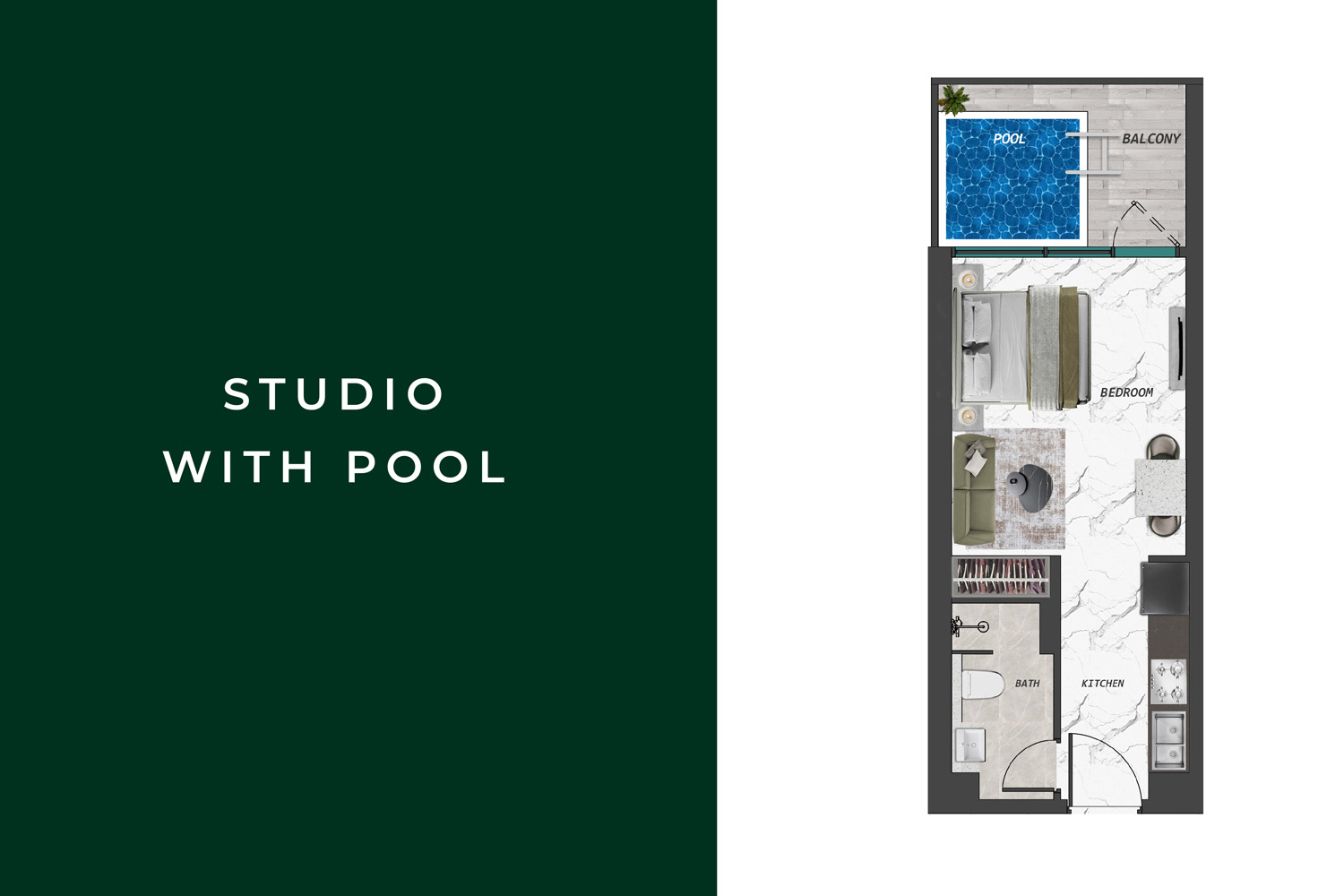 Residents are greeted with a harmonious blend of modernity and natural beauty. The meticulously designed apartments boast bedrooms with access to a private swimming pool, offering an oasis of relaxation amidst the bustling city. The development prioritizes elegance and purity, providing residents with an unparalleled living environment.