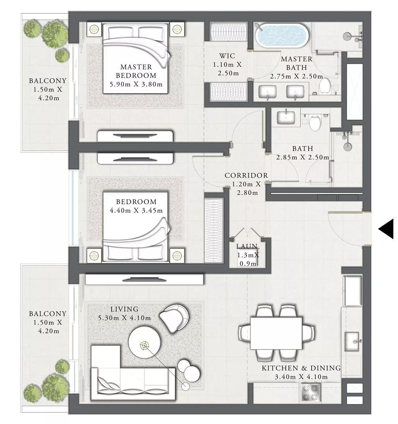 The total living area of the Seascape properties varies between 774 sq. ft and 2,987 sq. ft, while the layouts will include balconies or terraces, which will overlook Dubai’s longest swimmable canal pool. In addition, owners of the townhouses and 3-bedroom apartments will have an ensuite maid’s room at their full disposal.