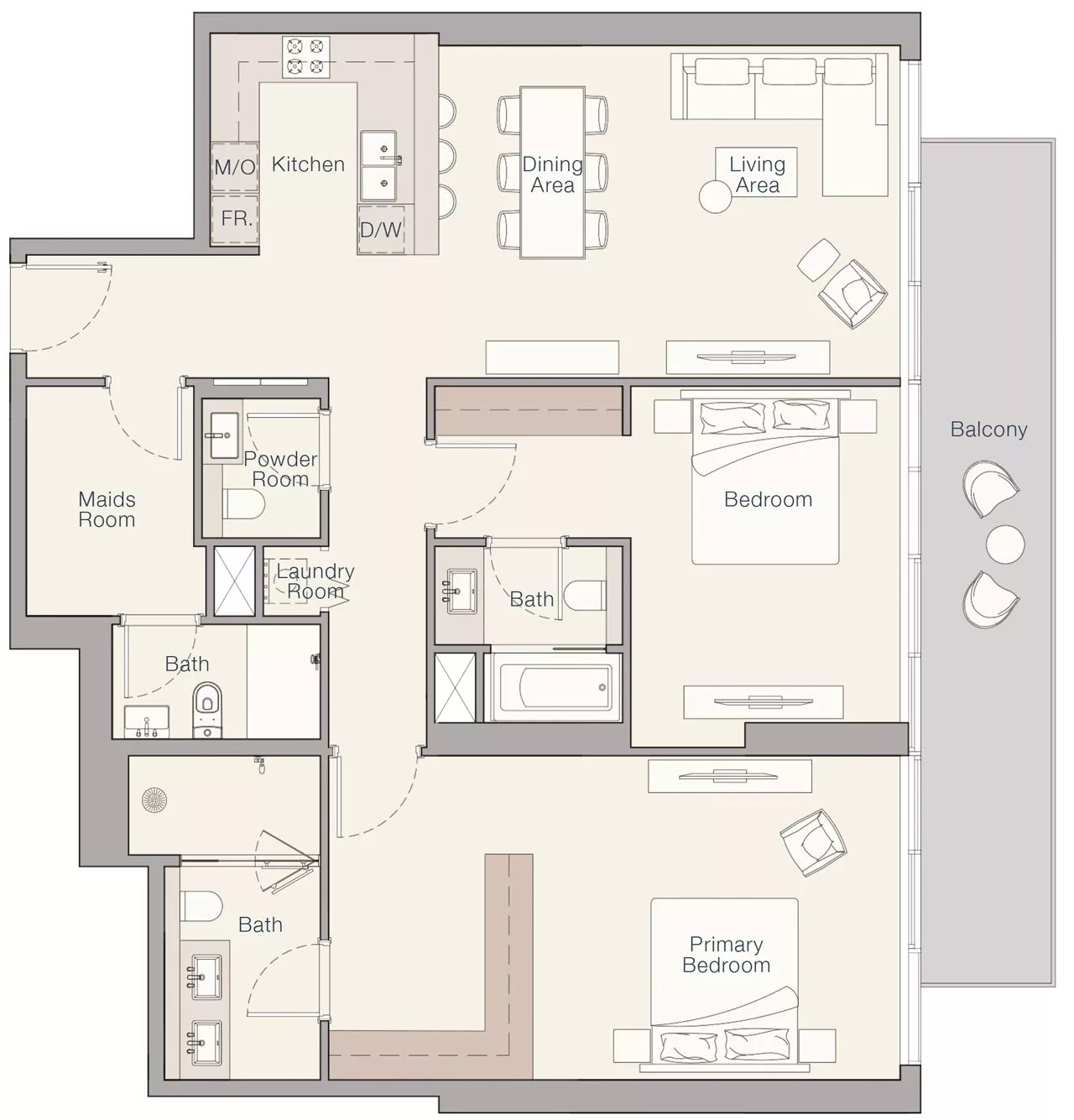 In terms of the layouts, each residence will come with a balcony, whilst select units will feature a maid’s room for the utmost convenience of homeowners. Other key features of the apartments include a laundry room and a powder room. The design of the upscale properties will be executed in a minimalistic nautical theme, reminiscent of the Dubai Water Canal, which surrounds the complex.